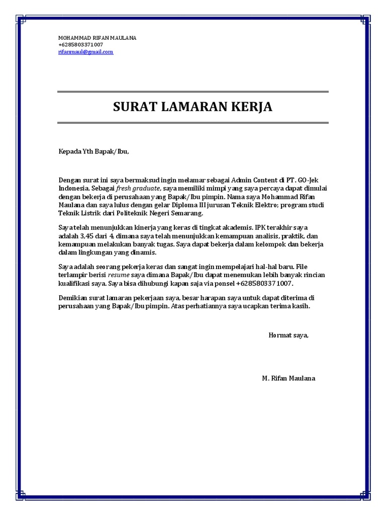 Contoh Surat Lamaran Kerja Yang Benar Menurut Hrd Doc Guelagi