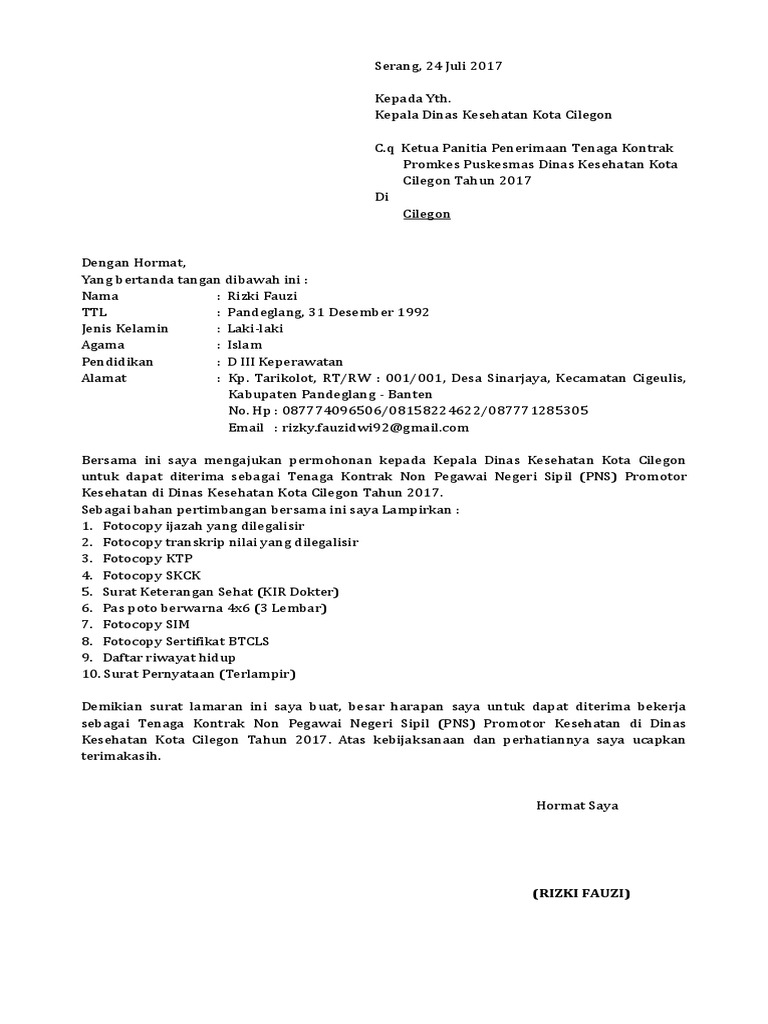 Contoh Surat Lamaran Kerja Puskesmas Yang Baik Dan Benar Contoh