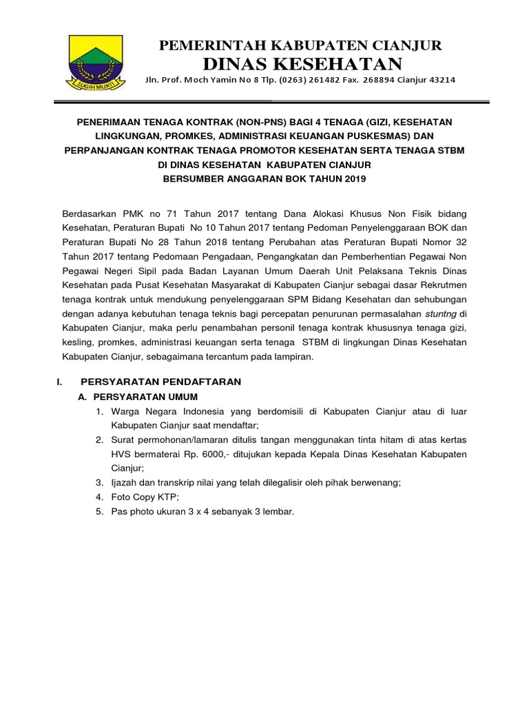 Penerimaan Tenaga Kontrak Promkes Puskesmas Dinkes Kab Bondowoso