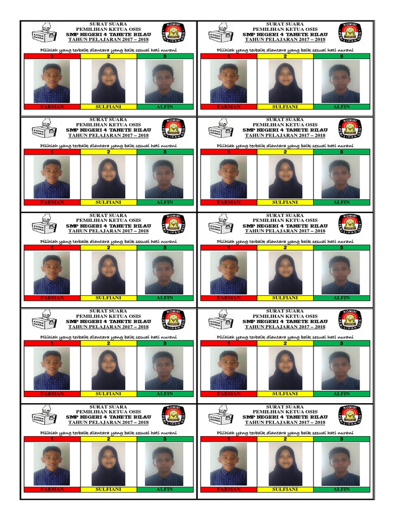 Contoh Kartu Suara Pemilihan Pengurus Osis Masa Bakti 2016 2017