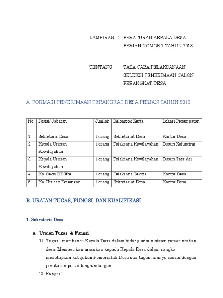 Lampiran Perkades Rekrut Perangkat Desa Perian 1