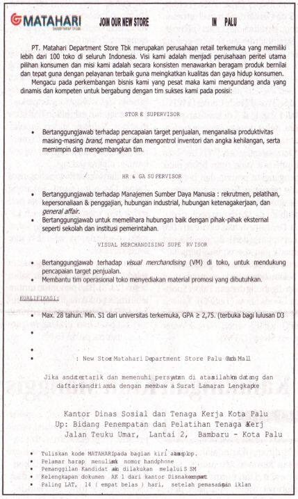 Lowongan Pekerjaan Di Matahari Dept Store Forum Lowongan Kerja
