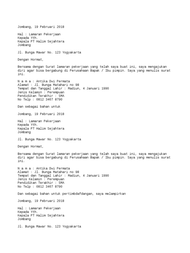 Download Contoh Surat Lamaran Kerja Pdf Terbaru 2019