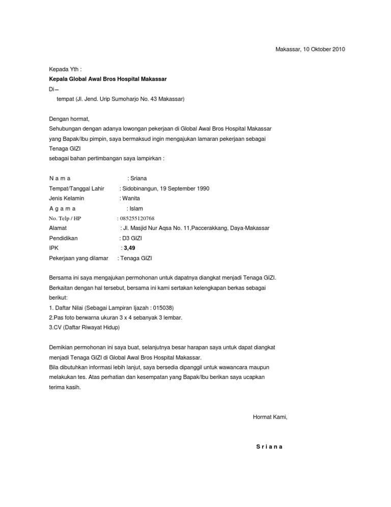Contoh Surat Lamaran Kerja Di Rumah Sakit Yang Benar Lalod