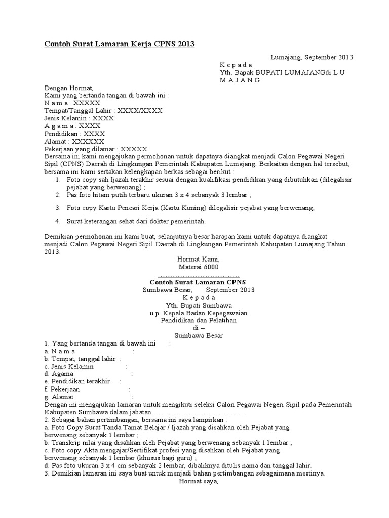 4 Contoh Surat Lamaran Kerja Cpns 2018 Word Doc Tinggal Edit Proses
