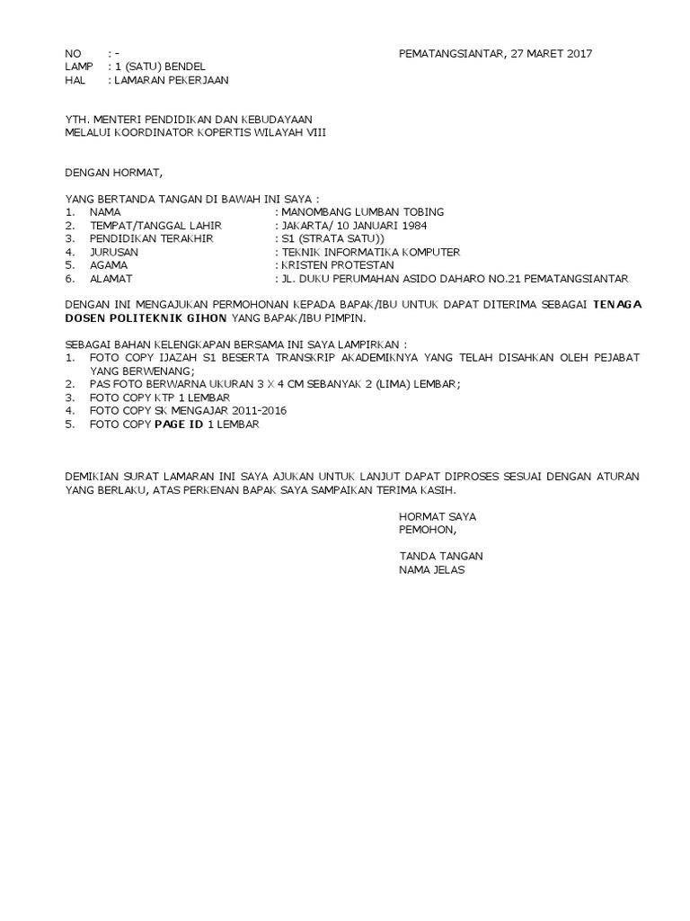 Contoh Surat Lamaran Kerja Sebagai Dosen Wawasanpendidikan