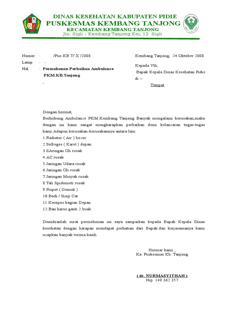 Contoh Surat Lamaran Kerja Puskesmas Yang Baik Dan Benar Contoh