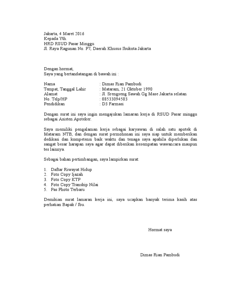 Surat Lamaran Kerja Apoteker Terbaru Info Kerja