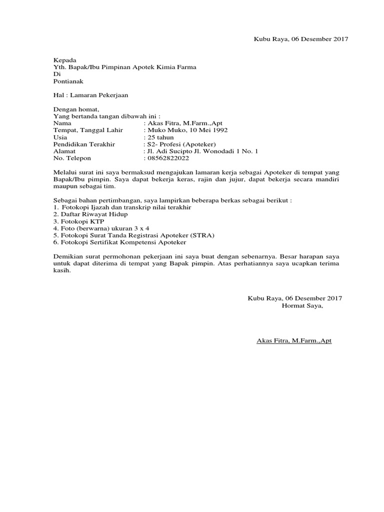 Contoh Surat Lamaran Kerja Apoteker Kimia Farma Tygpress