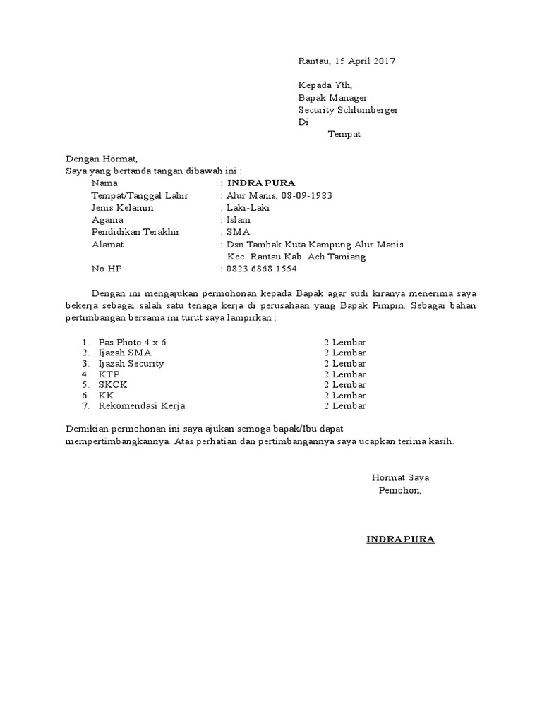 Surat Lamaran Kerja Satpam Terbaru 2017 Info Kerja