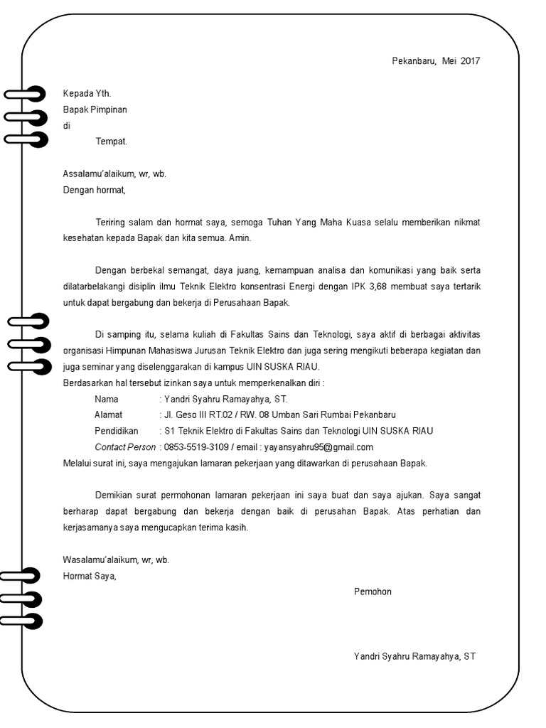 Contoh Surat Lamaran Kerja Yang Lolos Seleksi Hrd Cdc Unimal