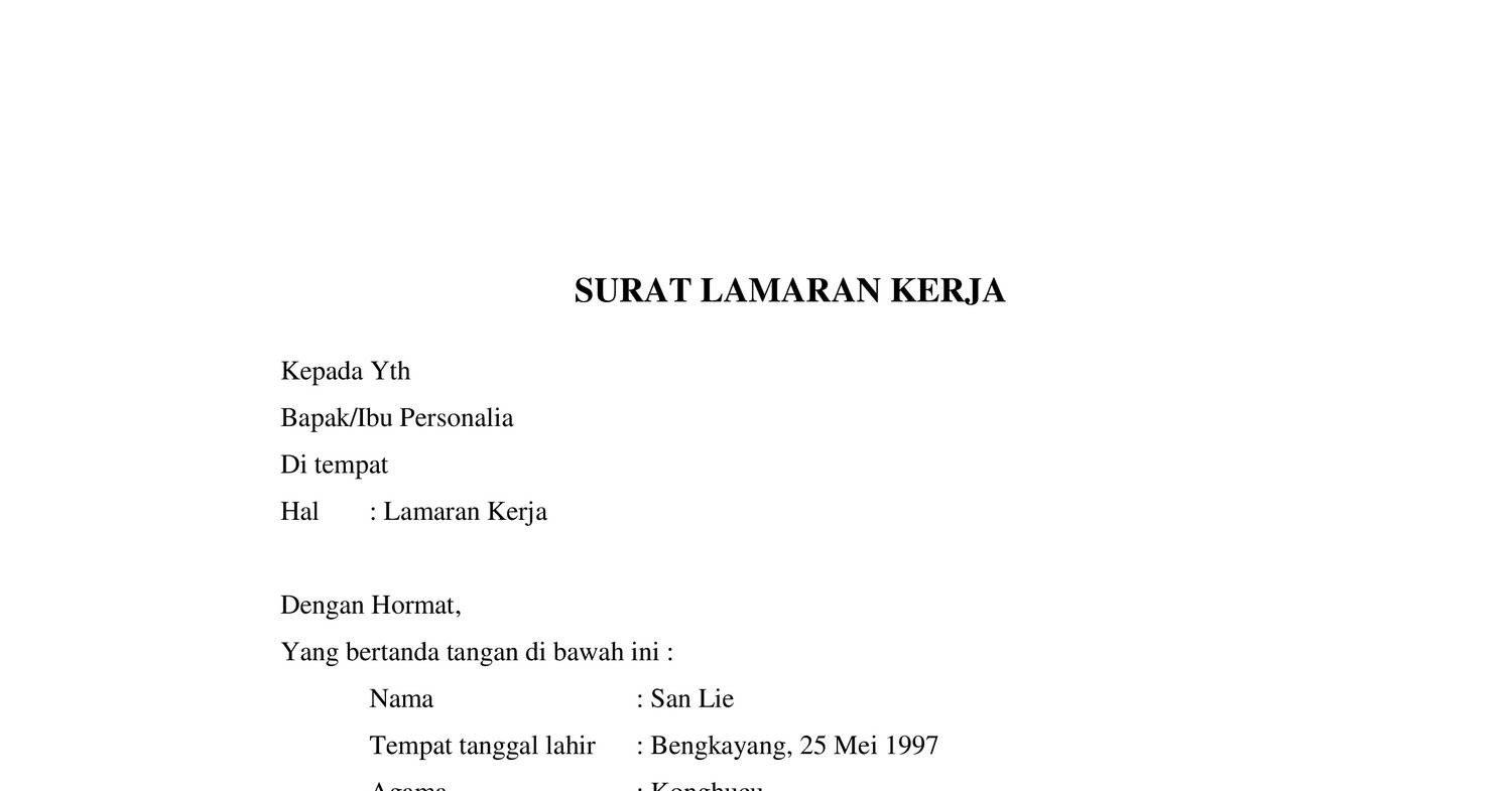 Contoh Surat Lamaran Kerja Terbaru Doc Pdf