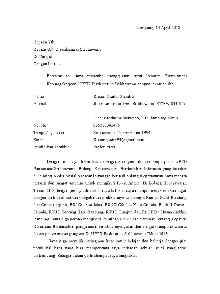 Contoh Surat Lamaran Kerja Puskesmas Contoh Yem