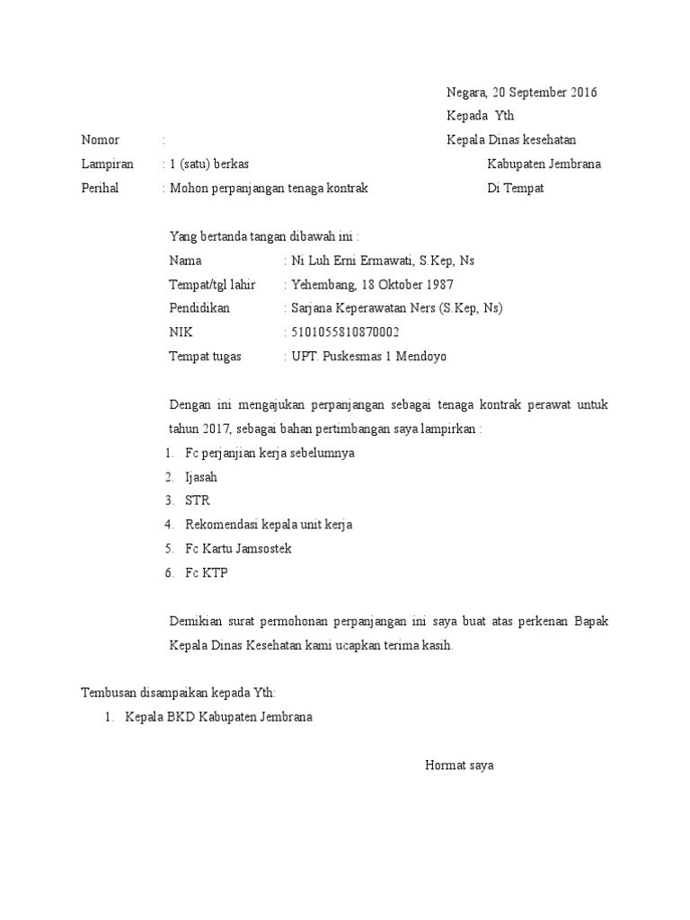 Contoh Sederhana Surat Lamaran Kerja Untuk Puskesmas Tribun