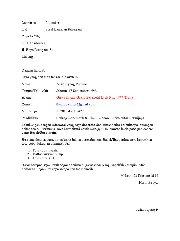 Contoh Surat Lamaran Kerja Yang Benar Sesuai Aturan Agung Cahyadi 46