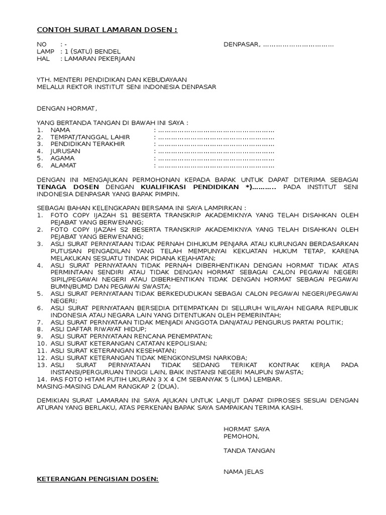 Contoh Surat Lamaran Kerja Dosen Lengkap Docx Size 26kb Contoh